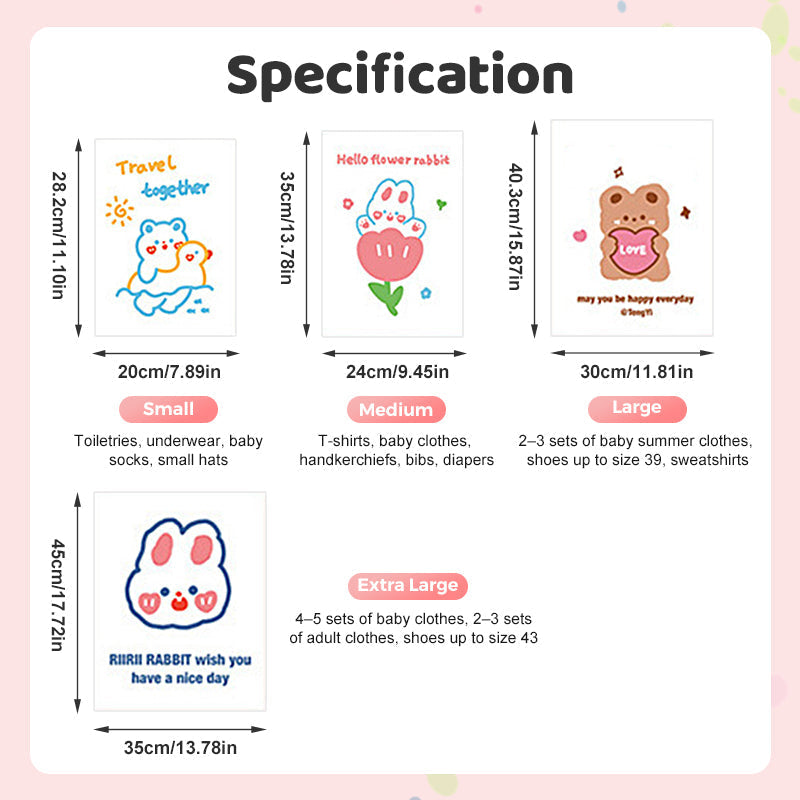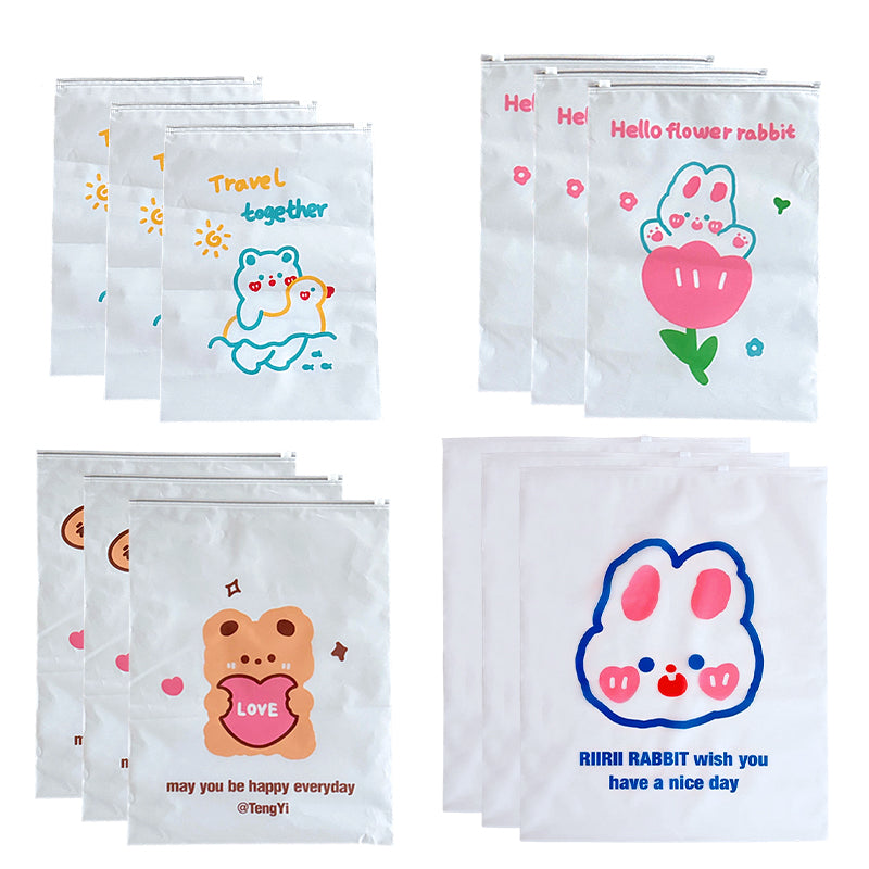 Contenuto della confezione: 10 pz / 40 pz × Buste Riutilizzabili per Abbigliamento con Cerniera e Stampe a Tema Cartoon