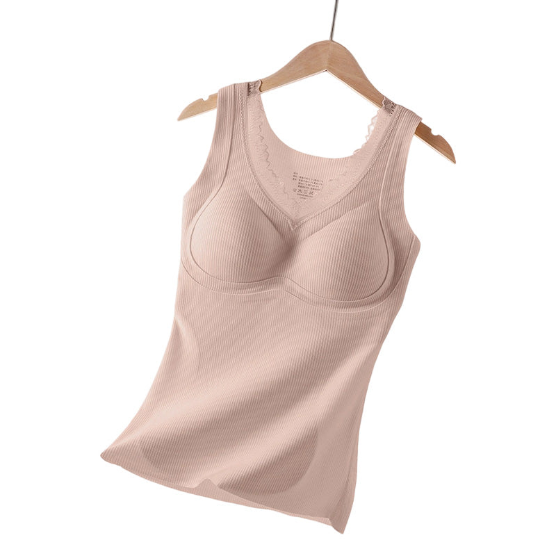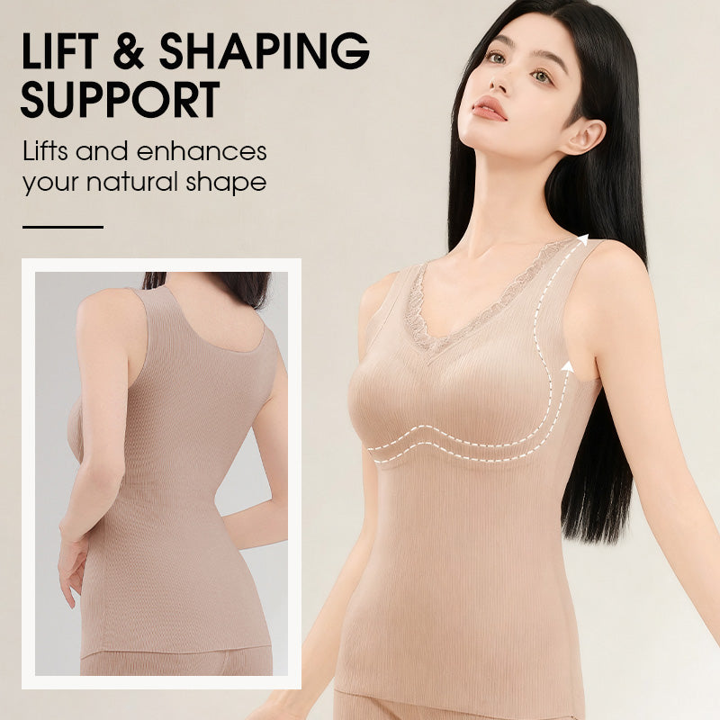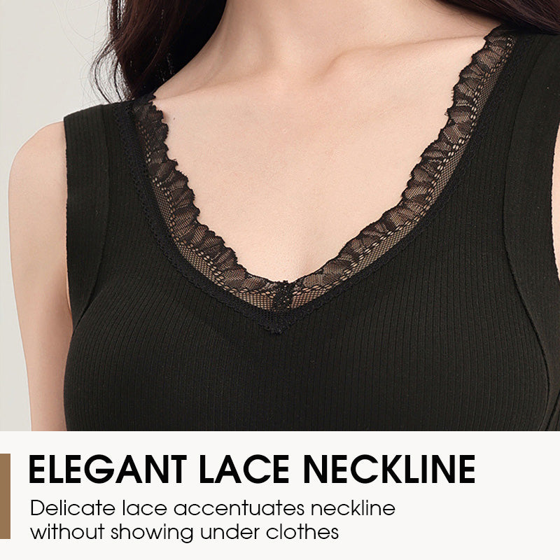 Canottiera Termica da Donna con Reggiseno Integrato e Scollo a V in Pizzo